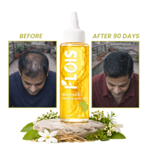 FLOIS RootHerb Hair Growth Oil | Plant-Based Ayurvedic Herbal Hair Oil for Hair Fall Control | 5 Cold-Pressed Oils & 12 Herbs | No Chemicals, No Mineral | Lightweight | Unisex | Free Wooden Comb 100ml